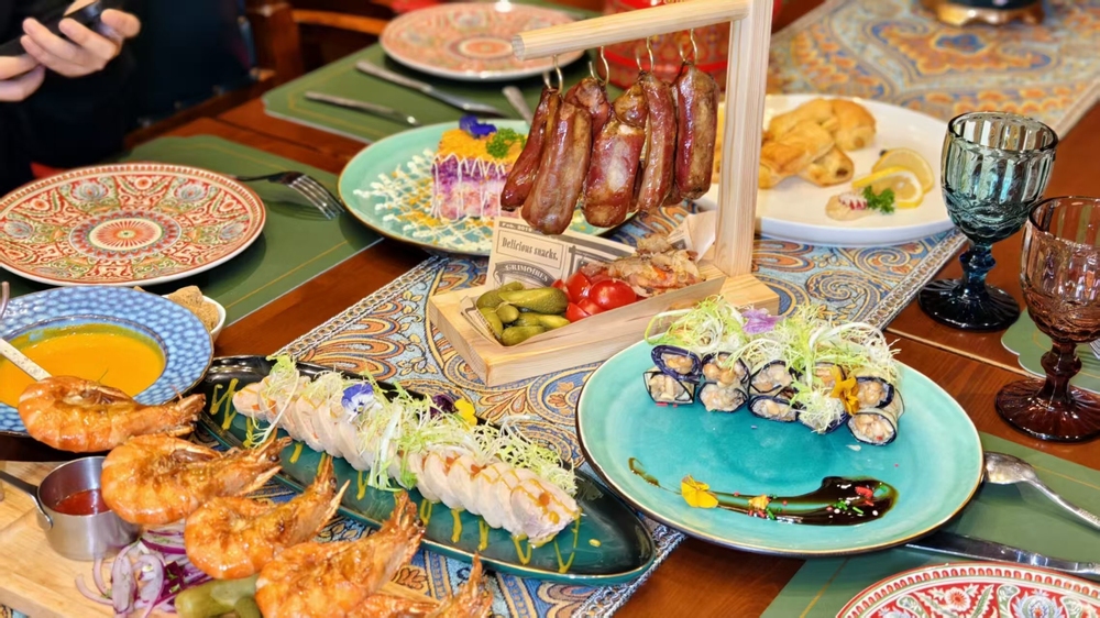 在黑河莉莉娅俄餐厅,晚六时已进入就餐高峰,店内座无虚席。“从假期第一天开始,每天客流量比平时多出50%到60%。”餐厅负责人介绍,为了应对客流高峰,厨房工作人员凌晨三点就到岗备餐。许多游客专程前来体验中俄特色美食,让等待也成了一种惬意的体验。
