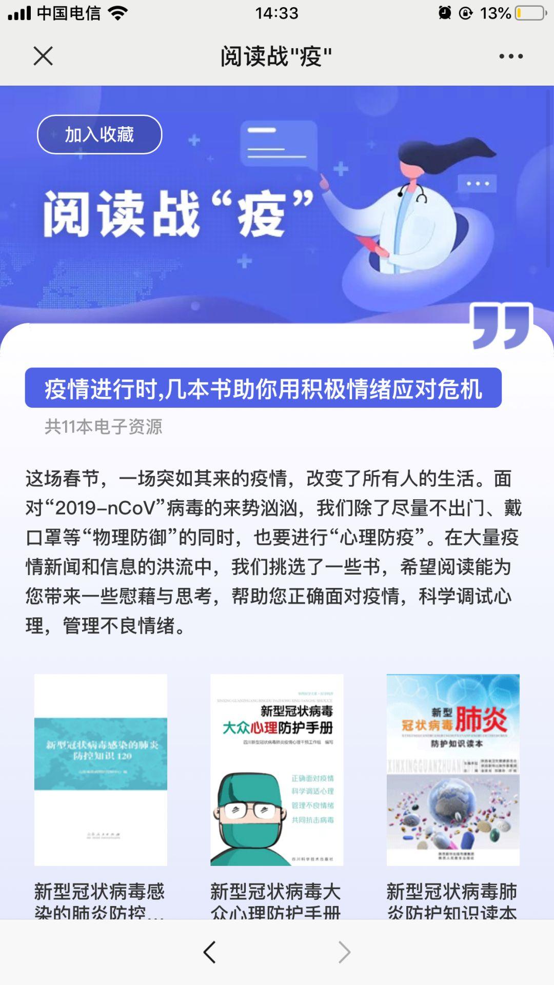 防疫专题知识宣传,答题战“疫”,品读经典,每日打卡,好书阅读,内容相当丰富,足不出户也能完成阅读计划。