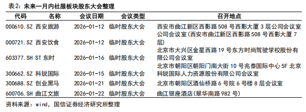行业与公司动态:1)近期服务消费领域政策持续加码,为行业发展注入新活力。全国商务工作会议再次强调“释放服务消费潜力”,特别强调提升海南自贸港的贸易投资自由化便利化水平;上海同步推出16条举措,旨在通过文博延时开放、文旅体融合等活动激发消费活力;多部门印发《扩大职工文体消费意见》,鼓励每年最多开展四次春秋游。2)企业端,国旅三亚国际免税城三期项目全面封顶,预计将在2026年分阶段落成。中免集团新任命陈素晶为首席运营官,其拥有超过三十年的奢侈品和时尚零售行业经验。首旅酒店高端品牌“诺岚”亮相北京环球度假区,亚朵与星巴克推出全等级联合会员。AI技术赋能行业效率提升,OTA有望受益于GEO发展,携程“智能引擎3.0”优化产品推荐效率超8%。本地生活领域,高德“扫街榜”覆盖吃喝玩乐全场景,商户订单量环比增长超3倍。教育板块聚焦职教改革,教育部于2026年1月4日公示了《关于拟同意设置本科高等学校的公示》,拟同意设置15所本科高等学校,7所为职业本科院校。科德教育发布公告披露公司控股股东、实际控制人签署《股份转让协议》,若本次股份转让最终实施完成,公司控股股东、实际控制人将发生变更,华芯未来将成为公司控股股东,公司实际控制人将变更为周启超。