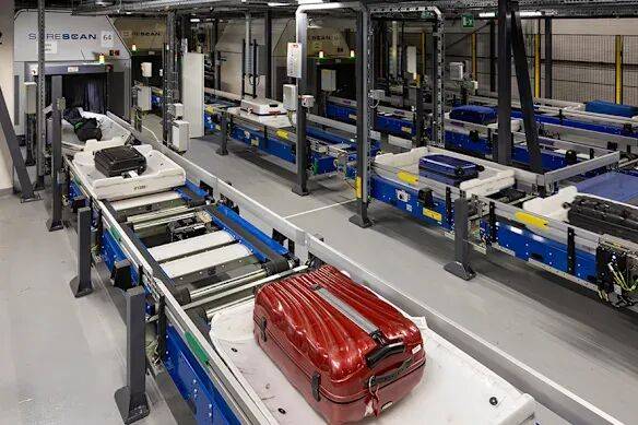 在流转过程中,行李需通过X光安检,如有异常将转入人工审核。若一切正常,行李将进入高速运输系统。