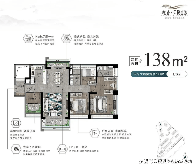 在建筑规划上,项目坚持低密宜居的原则。总占地面积约10.5万平方米,建筑面积约35.78万平方米,规划34栋住宅,总户数1505户,容积率仅2.88,绿化率高达35%。在金沙洲板块,如此低容积率的社区实属难得。楼栋间最大楼距超过80米,保证了充足的采光和隐私性。每一户都能享受到阳光和微风,视野开阔,心情舒畅。