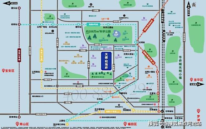 天健和瑞府地处光明科学城核心区域,北侧约500米就是深圳最大的城市公园-光明科学公园,208万㎡的光明科学公园,对标的是纽约中央公园,旨在打造成世界一流的大型综合性城市公园。