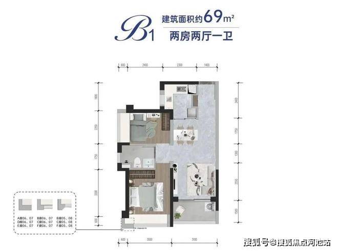 户型亮点:精致两居室,动静分区不打扰,卧室带飘窗,窗外美景尽收眼底,客餐厅一体化,营造奢阔空间感,约1.5米宽阳台,生活宽敞舒适。