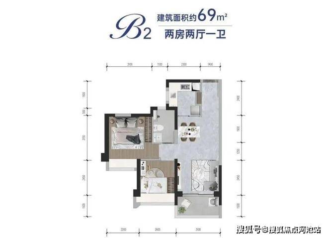 户型亮点:精致两居室,动静分区不打扰,卧室带飘窗,窗外美景尽收眼底,客餐厅一体化,营造奢阔空间感,约1.5米宽阳台,生活宽敞舒适。