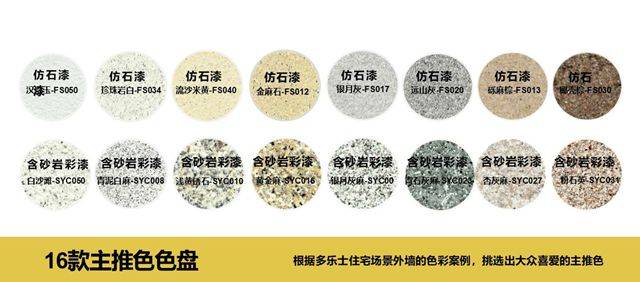 其次,多乐士在色彩上的专业程度众所周知,深耕色彩领域20余年,始终立于全球家居色彩潮流的前沿。多乐士根据住宅场景外墙的色彩案例,为朗境产品挑选出大众喜爱的16款主推色盘,像天山白麻、珍珠岩白、汉白玉等已经成为主推流行色。16款颜色有简约经典、有高级雅致、有鲜明时尚,可以满足各类人群的需求。