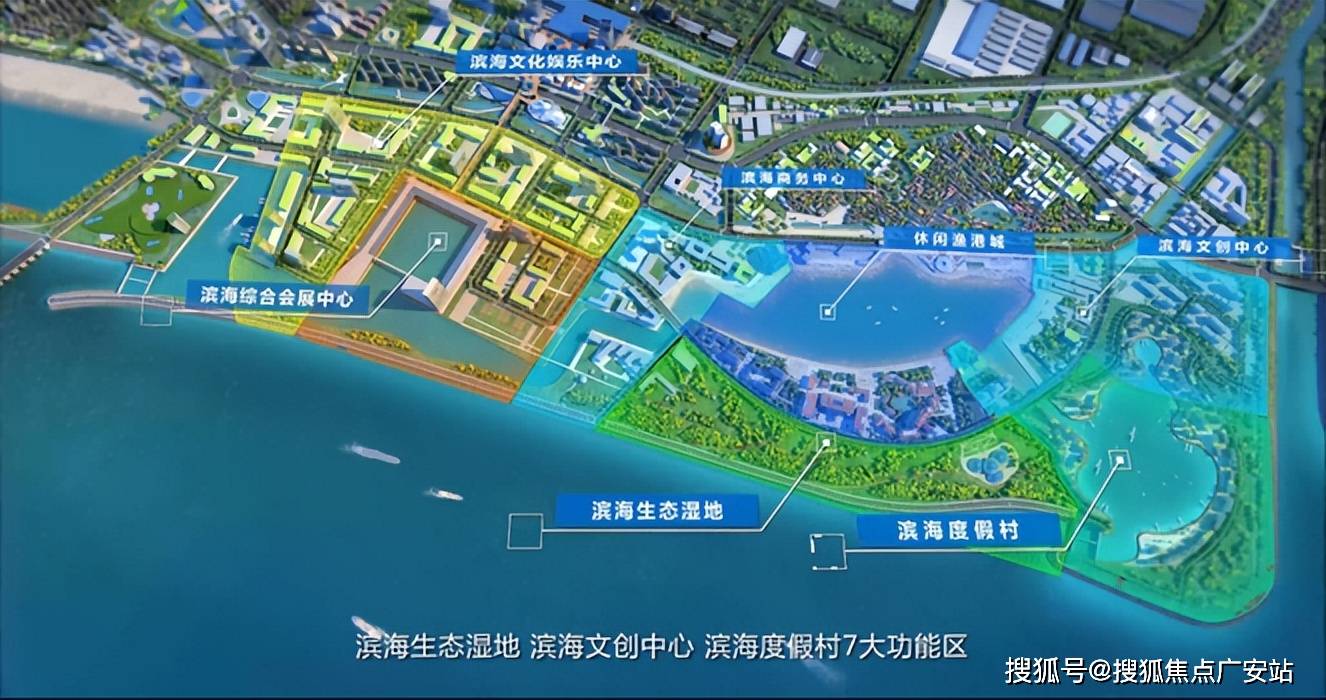 滨海文化娱乐中心、滨海综合会展中心、滨海商务中心、休闲渔港城、滨海生态湿地、滨海文创中心和滨海度假村七大项目。