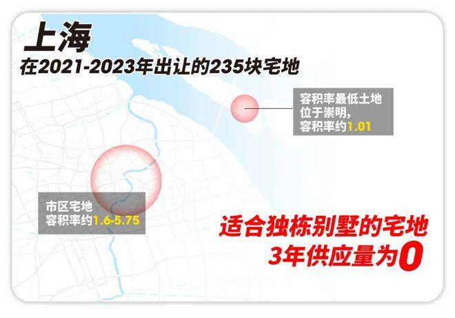要知道,上海如今已经取消出让容积率1以下的土地了。在2021-2023年出让的235块宅地中,容积