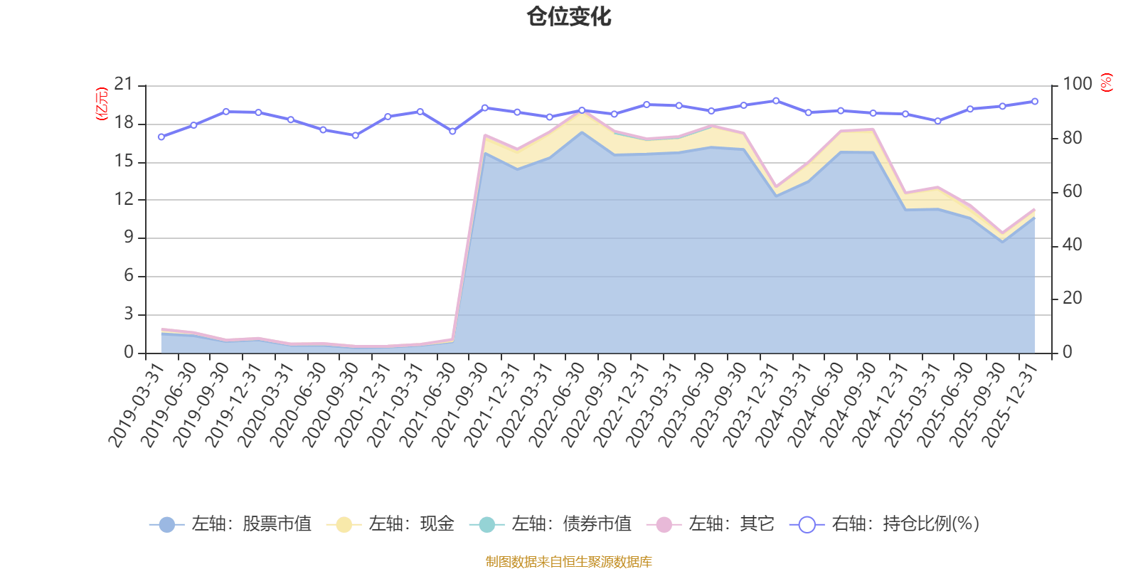据定期报告数据统计,近三年平均股票仓位为91.1%,同类平均为72.57%。2023年末基金达到94.26%的最高仓位,2019年一季度末最低,为80.75%。