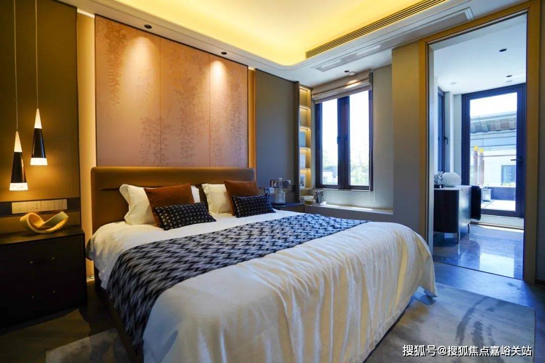 通过优化后的“L型”空间排布,实现了三面有园林环绕,前庭空间尺度非常大,一进门就是约10.2米的大横厅,气派十足,采光也做到极致,日常起居极为从容舒适。