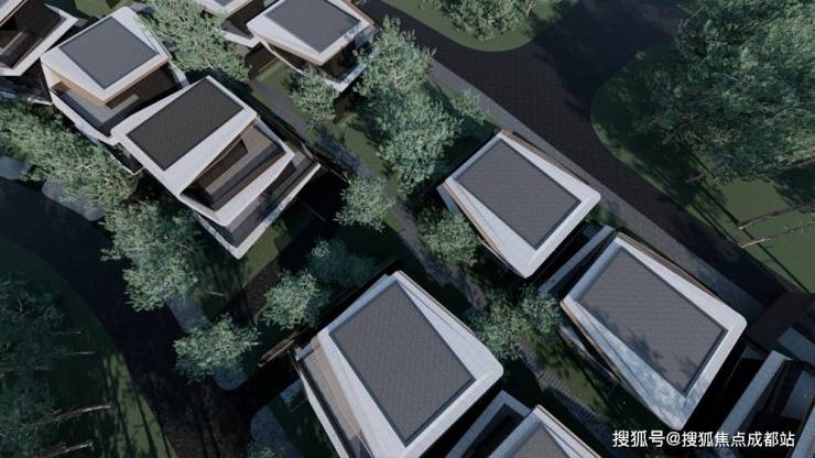 园区景观中轴,指向人字绿廊与西岭雪山,整体以“川西秘境”为出发点,对标“雪山下的公园城市”3D人文生态模板,以园区内外自然高差形成多元场景表达,打造双环两廊、川西十景的园林景致,同时将架空层泛会所与景观体系