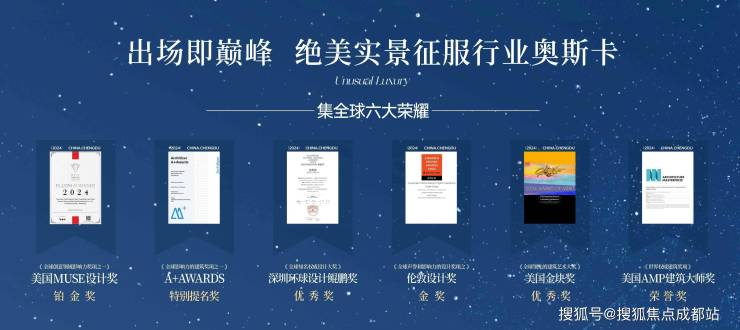 荣膺全球建筑界“奥斯卡”美国金块奖、美国MUSE设计铂金奖、伦敦设计奖金奖等六大国际奖项。