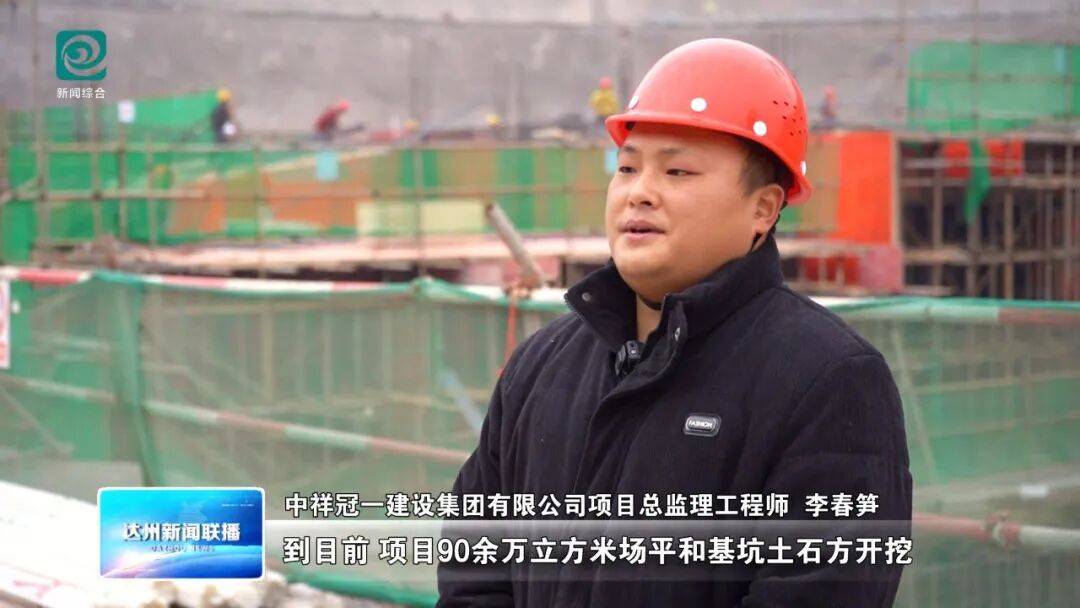 中祥冠一建设集团有限公司项目总监理工程师 李春笋:到目前,项目90余万立方米场平和基坑土石方开挖及1万(平)方(米)边坡治理已经完成,90根抗滑桩全部完成,550根基础桩已完成40%,基础底板完成4300余平方,完成率32%,地下车库完成20%,总投资累计达到1.12亿元。