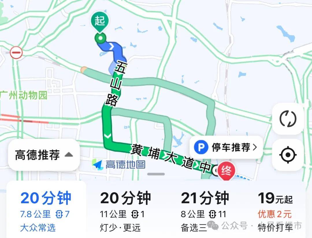 自驾去往珠江新城:同上,东莞庄路转到长江南路,再转嵩山路至半山西路,再到五山路,至天河东路,全程6.3公里,耗时20分钟左右。