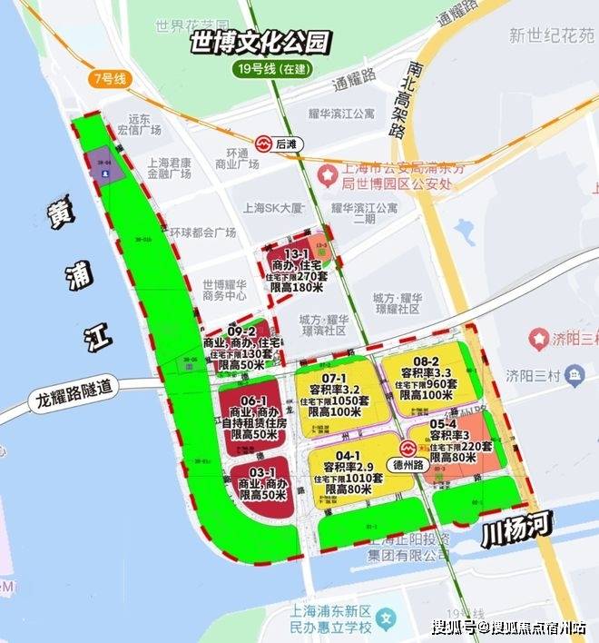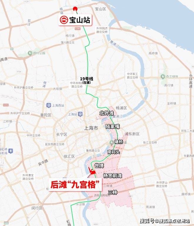 交通上方面:原有7号线后滩站,串联徐汇滨江、静安寺等核心商圈,但相对来讲,站点近后滩商办,离九宫格略远;但19号线的建设,真正打通了后滩任督二脉,不仅后滩站双轨交汇,还规划了德州路站,就在九宫格门口。