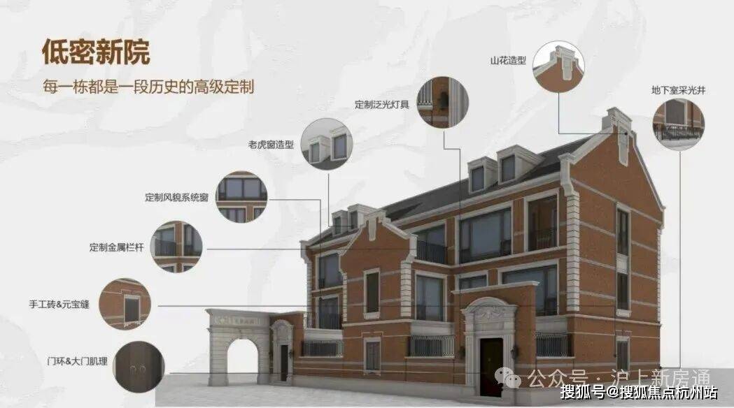 聚焦到风貌别墅本身,静安里应用8大定制级的产品设计手法,通过定制级手工砖、定制级山花造型、定制级铁艺栏杆、定制级入户壁灯、定制级的风帽雨水斗等部品部件,每一处细节都是匠心打磨的痕迹
