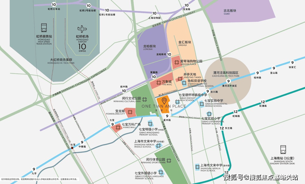 周边国际化生活氛围浓郁,毗邻金汇、龙柏,古北三大国际住区板块,辐射漕河泾高新开发区和大虹桥商务区的高端商务和产业客群。